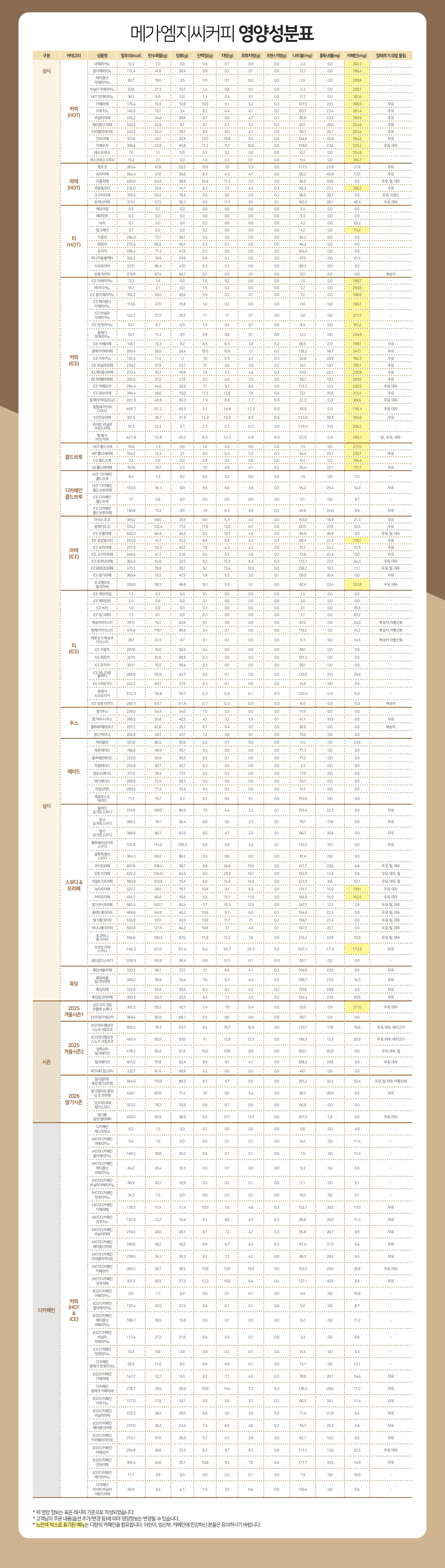 메가MGC커피 영양성분표 (26.01.15ver)